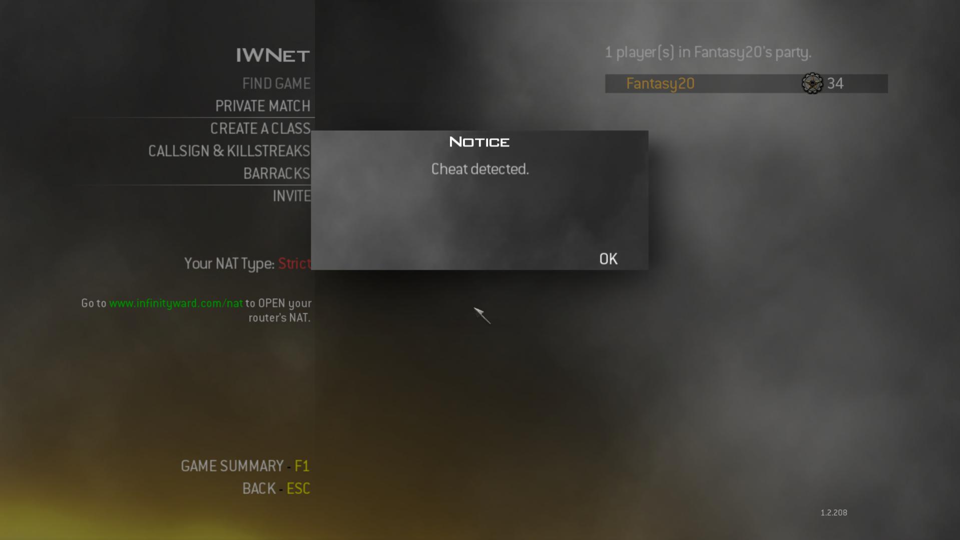 I got Banned by Cheat Detected on Call of Duty Modern Warfare 2 I just did as usually inject the cheat & enter the game when I did joined Online I just start normal play the game was Okey there is no cheat detected after I did Press F8 the game stop & Kicked me to the Menu & there was a message wrote: Cheat Detected! Why What wrong why no update for the hacks?